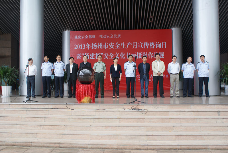 6月9日上午,2013年揚(yáng)州市“安全生產(chǎn)月”宣傳咨詢?nèi)蒸?ldquo;揚(yáng)建杯”安全文化書畫攝影作品展在市美術(shù)館北門廣場舉辦。副市長張寶娟出席了當(dāng)天的活動,并和廣大市民一同參觀安全文化書畫攝影作品。市安監(jiān)局、交通局、公安局、建設(shè)局、氣象局、質(zhì)監(jiān)局等單位領(lǐng)導(dǎo),以及部分駐揚(yáng)單位職工代表,共計400余人參加了活動。