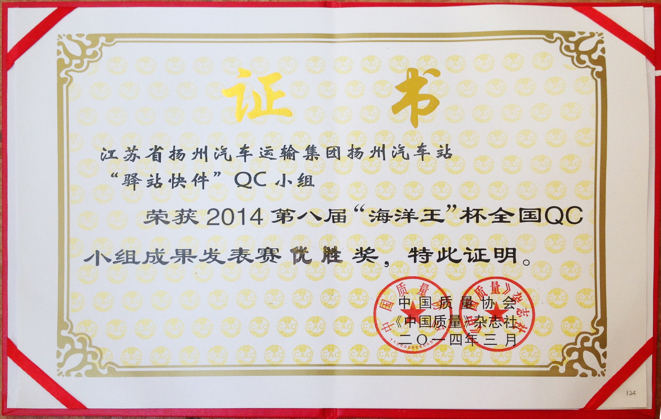 “海洋王”杯QC小組發(fā)表賽是一項(xiàng)全國(guó)性比賽,今年共有300多個(gè)成果報(bào)名,經(jīng)過(guò)層層選拔,來(lái)自全國(guó)各地QC小組代表500余人,197個(gè)成果參加現(xiàn)場(chǎng)發(fā)布。經(jīng)過(guò)5天緊張的成果發(fā)布,我司揚(yáng)州汽車(chē)站“驛站快件”QC小組成員余妍、潘潔發(fā)表的《降低到達(dá)庫(kù)收發(fā)貨的誤差率》在激烈的角逐中脫穎而出,獲得第八屆“海洋王”杯最高榮譽(yù)——優(yōu)勝獎(jiǎng),和其他47個(gè)成果一起被直接推薦為2014年度全國(guó)優(yōu)秀QC小組。