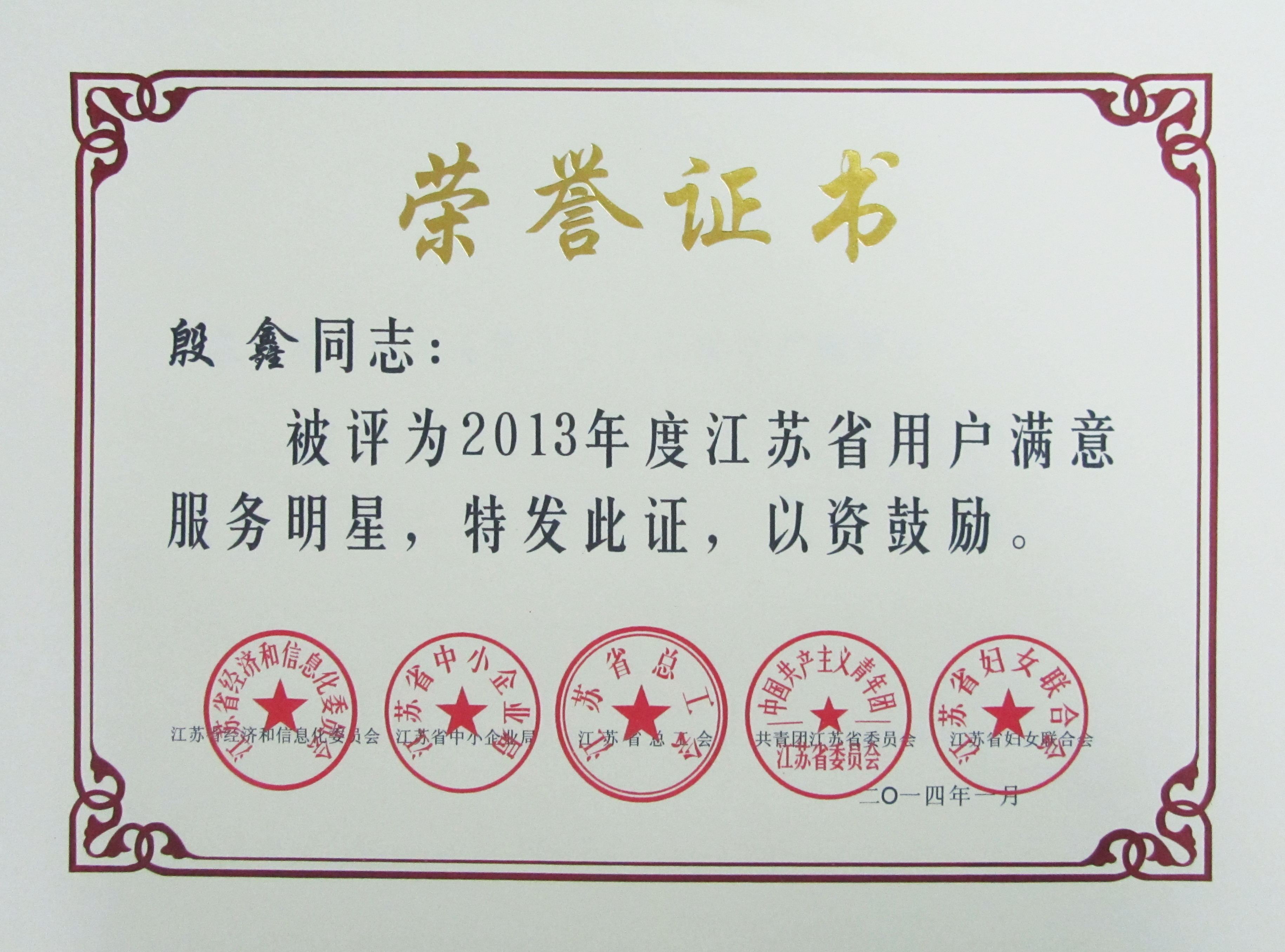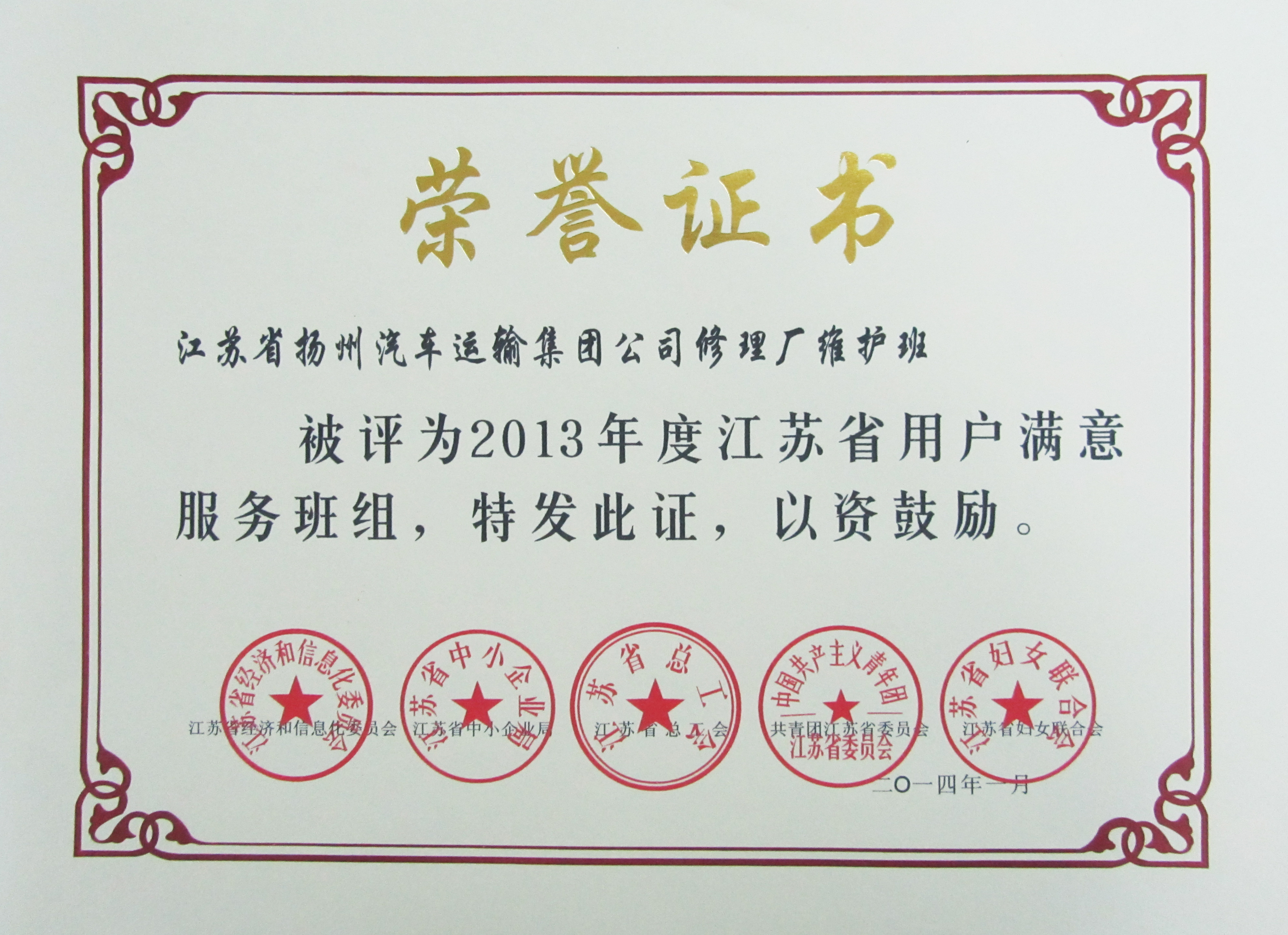 日前,由江蘇省經(jīng)濟和信息化委員會、江蘇省總工會、江蘇省中小企業(yè)局等五家單位聯(lián)合開展的2013年度創(chuàng)建“用戶滿意服務”活動評審結(jié)果揭曉,我司修理廠維護班榮獲2013年度江蘇省“用戶滿意服務”班組,快客分公司殷鑫同志榮獲2013年度江蘇省“用戶滿意服務”明星稱號。
