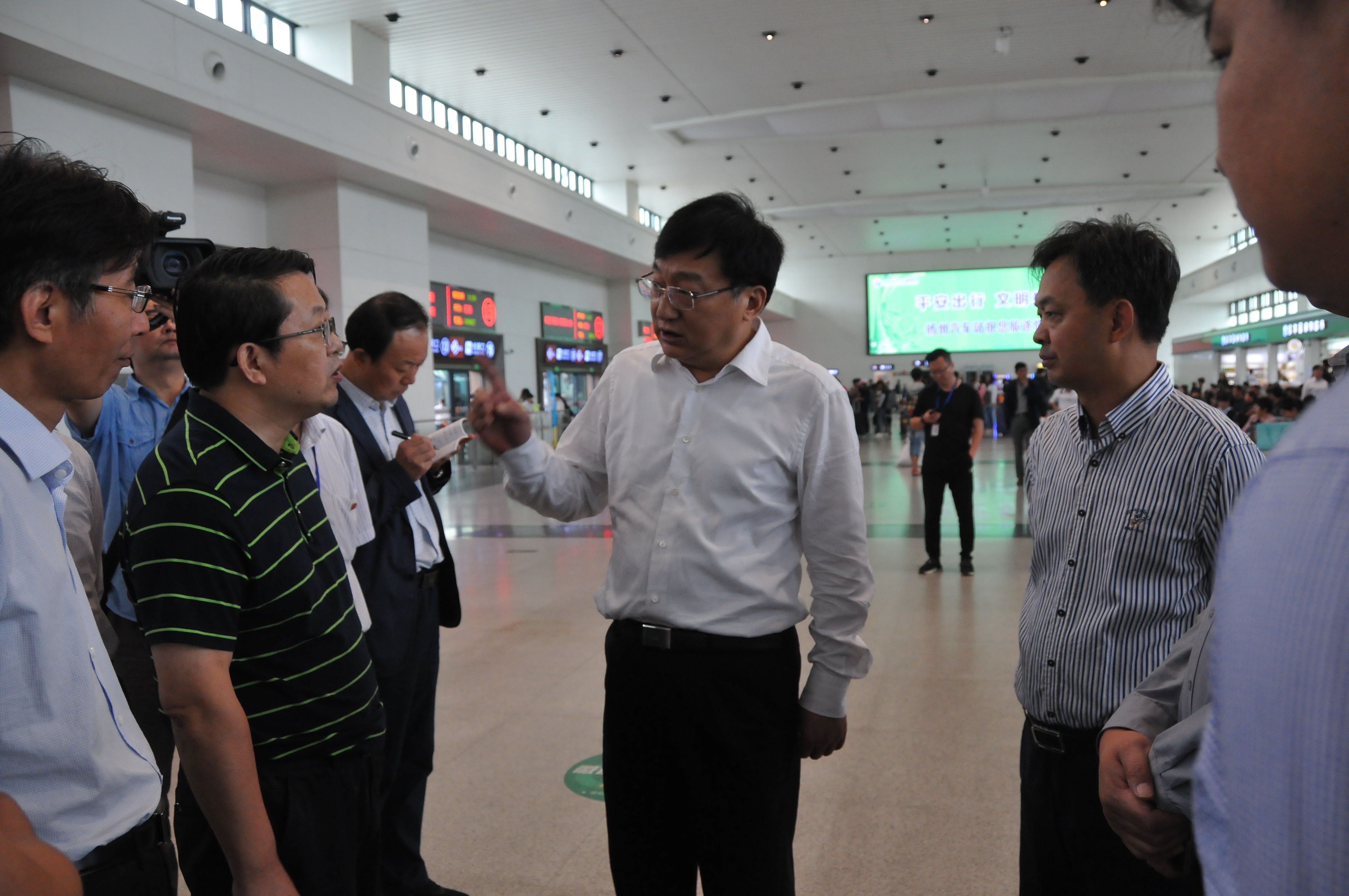 丁市長深入車站各個部位進行現(xiàn)場查看,在安檢口,丁市長重點了解實名制購票工作的執(zhí)行情況。當他看到揚州站對旅客進行身份驗證導流,廣播宣傳提前準備好身份證,安保人員嚴格核查人、票、證三者合一等系列舉措后,對揚州站的實名制工作給予了肯定。在候車廳,丁市長再三叮囑要做好應(yīng)急準備工作,確保旅客走了、走好,還要讓旅客走得平安順暢。