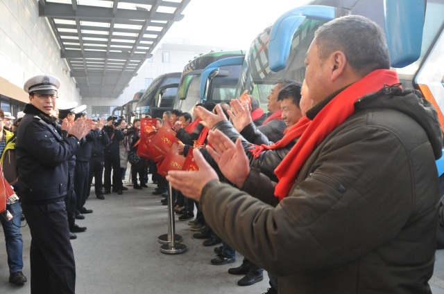 2月1日上午8點(diǎn)30分,揚(yáng)州市2018年春運(yùn)啟動(dòng)儀式在西部樞紐揚(yáng)州客運(yùn)站舉行。民警、駕駛員、美團(tuán)騎手、文明交通志愿者等代表參加活動(dòng)。揚(yáng)州市公安局、交通運(yùn)輸局、安監(jiān)局、交警支隊(duì)、運(yùn)管處、中國(guó)人壽、揚(yáng)汽集團(tuán)等部門(mén)單位領(lǐng)導(dǎo)出席活動(dòng)。