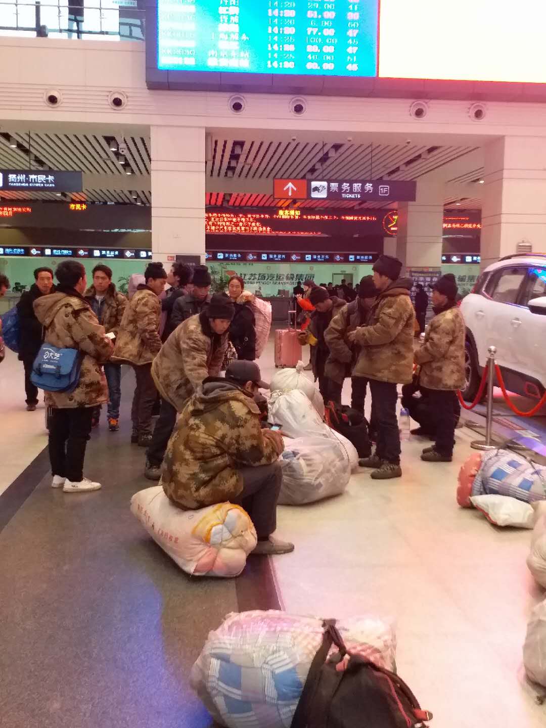 21位在揚(yáng)州某工地打工的安徽無為縣農(nóng)民工,昨天工地開始放假,于是今天大家集中提前返鄉(xiāng)。得知情況后,班長尹海霞便帶領(lǐng)工作人員熱情地幫助大家購買起票來,為節(jié)約因排隊造成的時間緊張,尹班長隨即吩咐班組人員利用工友的手機(jī),幫助農(nóng)民工進(jìn)行網(wǎng)上購票,不到二十分鐘,解決了農(nóng)民兄弟的購票問題。隨行中一位已在揚(yáng)州打工三個年頭的“小工頭”夏師傅感慨萬千,動情地說:“沒想到今年春運(yùn)前買車票這么容易,多虧了車站工作人員的幫忙”。
