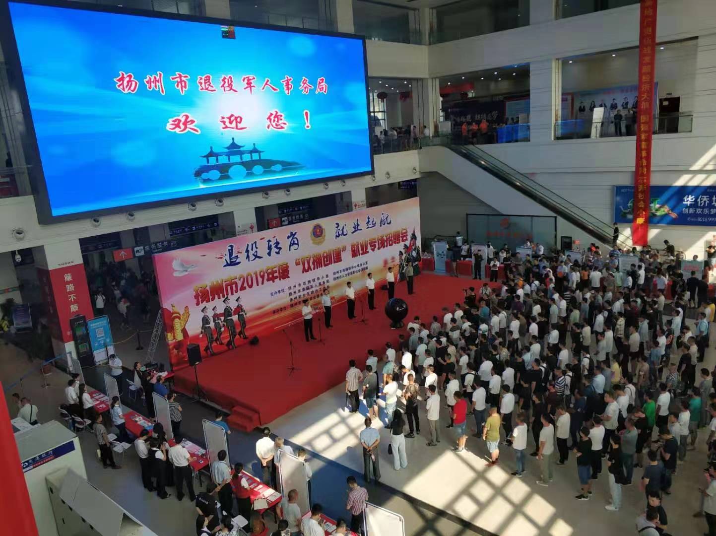 8月17日上午,揚(yáng)州市2019年度“雙擁創(chuàng)建”就業(yè)專場招聘會在揚(yáng)州西部客運(yùn)樞紐揚(yáng)州汽車站一樓大廳舉辦。會場設(shè)置50多個招聘席位,計(jì)劃安排1500個就業(yè)崗位,1200余名退役軍人及隨軍家屬參加現(xiàn)場招聘。招聘活動由揚(yáng)州市雙擁領(lǐng)導(dǎo)小組、揚(yáng)州市退役軍人事務(wù)局、揚(yáng)州軍分區(qū)、揚(yáng)州市人社局聯(lián)合主辦,旨在拓寬退役軍人就業(yè)渠道,為退役軍人和企業(yè)之間搭建起互通橋梁。