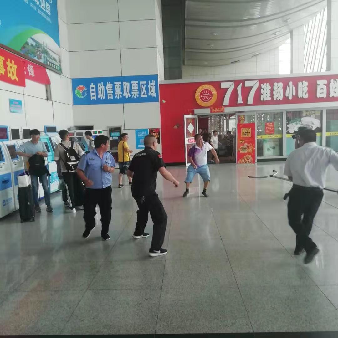 演練過(guò)程中,售票廳一名“恐怖分子”突然拿出一把堅(jiān)刀,揮刀砍向進(jìn)站的旅客及周邊群眾,車站工作人員發(fā)現(xiàn)后,立即將情況上報(bào)反恐防暴應(yīng)急領(lǐng)導(dǎo)小組、拉響站內(nèi)報(bào)警鈴、疏導(dǎo)旅客撤離至安全區(qū)域、關(guān)閉大門,并撥打“110”電話報(bào)警,同時(shí)反恐救援組人員使用手持盾牌、防暴鋼叉與歹徒周旋,進(jìn)行前期防控,牽制“恐怖分子”至公安趕赴現(xiàn)場(chǎng),最終成功制服“歹徒”,“事件”得到了及時(shí)有效的處置。
