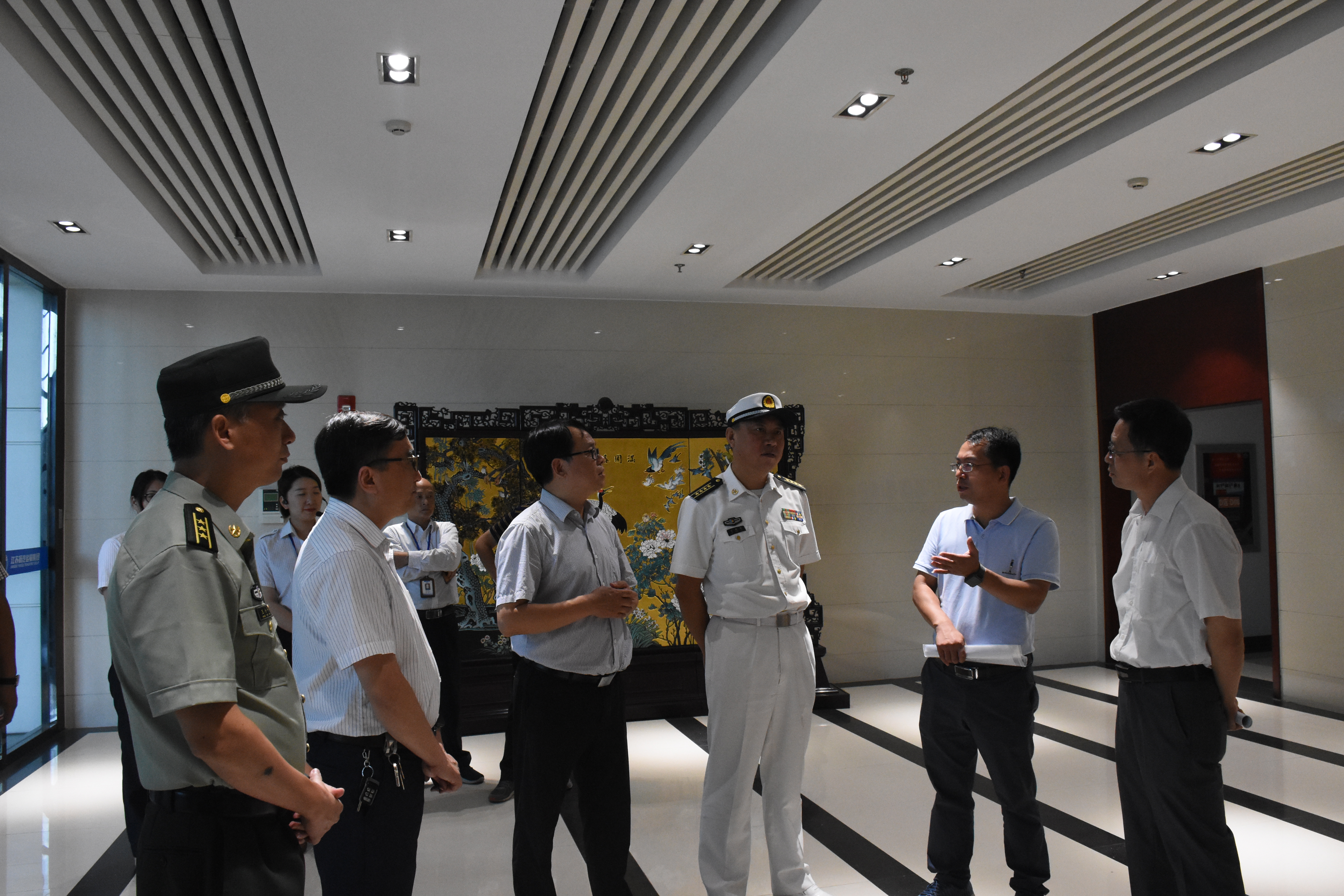 為扎實(shí)推進(jìn)揚(yáng)州市八創(chuàng)“全國雙擁模范城”工作,2019年9月23日,揚(yáng)州軍分區(qū)司令員劉朝輝、市退役軍人事務(wù)局局長孫玉金蒞臨揚(yáng)州汽車客運(yùn)站調(diào)研,市交通產(chǎn)業(yè)集團(tuán)副總經(jīng)理、揚(yáng)汽集團(tuán)董事長、黨委書記龔宇峰,揚(yáng)汽集團(tuán)黨委副書記顧懷,市交通局“八創(chuàng)”工作具體負(fù)責(zé)人印飛等陪同調(diào)研。