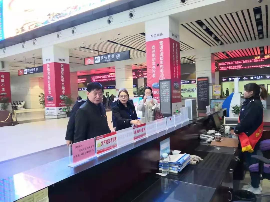 吳忠俊一行先后來到車站服務大廳、售票窗口等重點部位,查看了相關(guān)崗位面向服務對象、面向職工群眾亮身份、亮承諾、亮標準、亮作為情況。并通過座談會形式,與支部黨員、干部代表面對面交流,了解支部在推動中心工作開展、凝心聚力等方面的主要做法,聽取了一線生產(chǎn)經(jīng)營中存在的困難問題及有關(guān)意見建議。