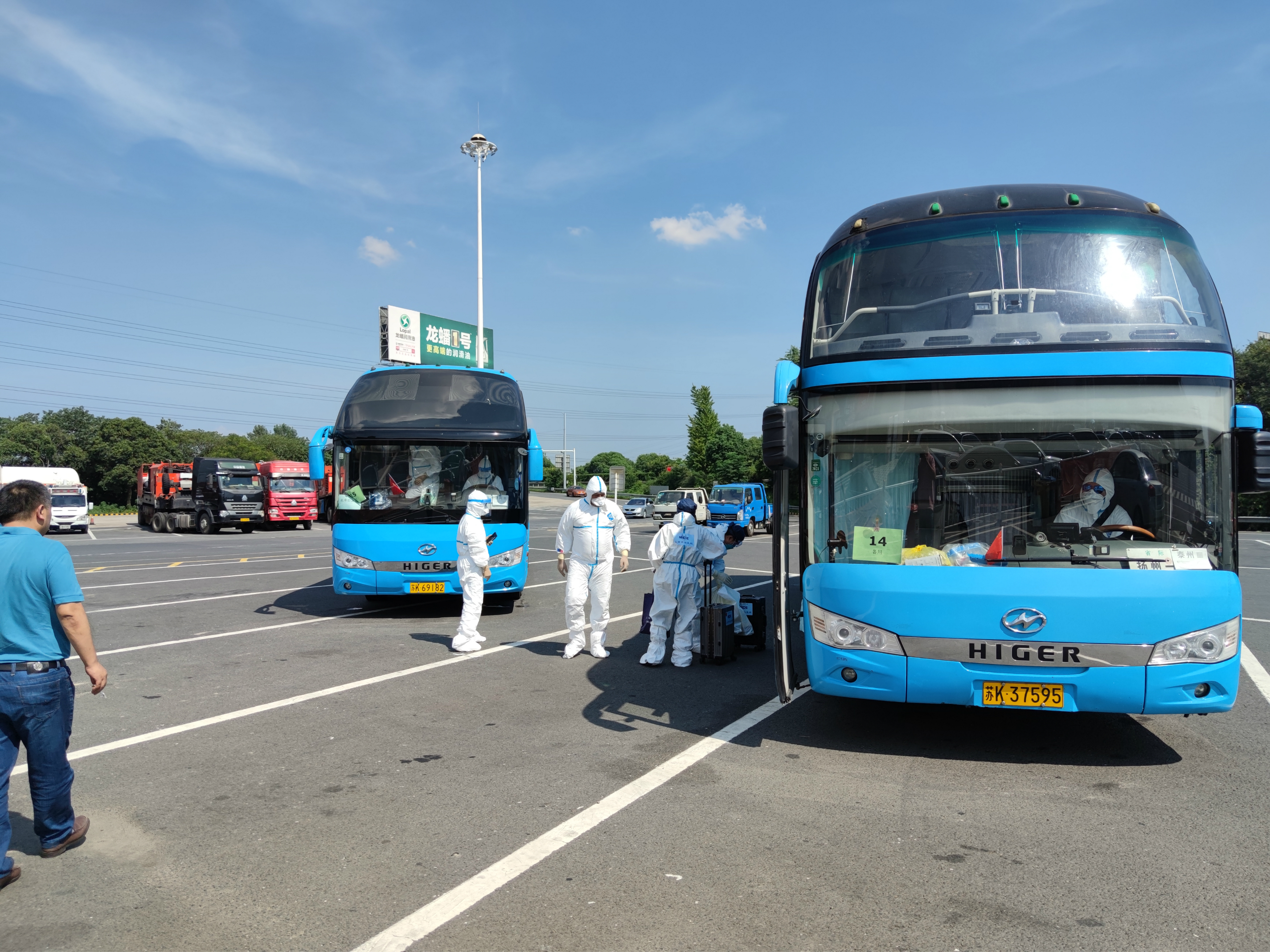 當(dāng)天氣溫達(dá)到36度,機(jī)坪溫度更是超過50度,在這種酷暑下,駕駛員全身穿戴密閉的防護(hù)服,對(duì)行車安全是巨大的挑戰(zhàn)。龔宇峰董事長趕赴現(xiàn)場(chǎng),再次對(duì)駕駛員抗高溫,保安全進(jìn)行了交代。中午11時(shí)40分,首批車輛從機(jī)場(chǎng)出發(fā),至14時(shí)11分最后一批車出發(fā),將二百多名境外返揚(yáng)人員運(yùn)送至相關(guān)酒店。16時(shí)50分,所有車輛圓滿完成任務(wù),回到指定地點(diǎn),接受消毒和檢測(cè)。