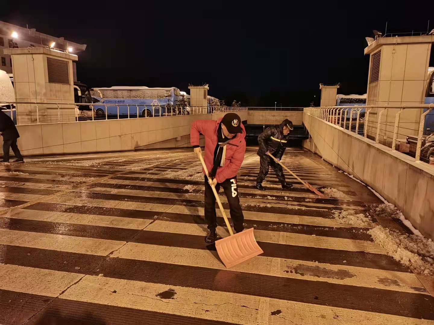 大雪過(guò)后,融雪除冰是旅客出行的保障,車(chē)站連夜安排職工、物業(yè)根據(jù)雪情實(shí)施作業(yè),確保道路通暢。