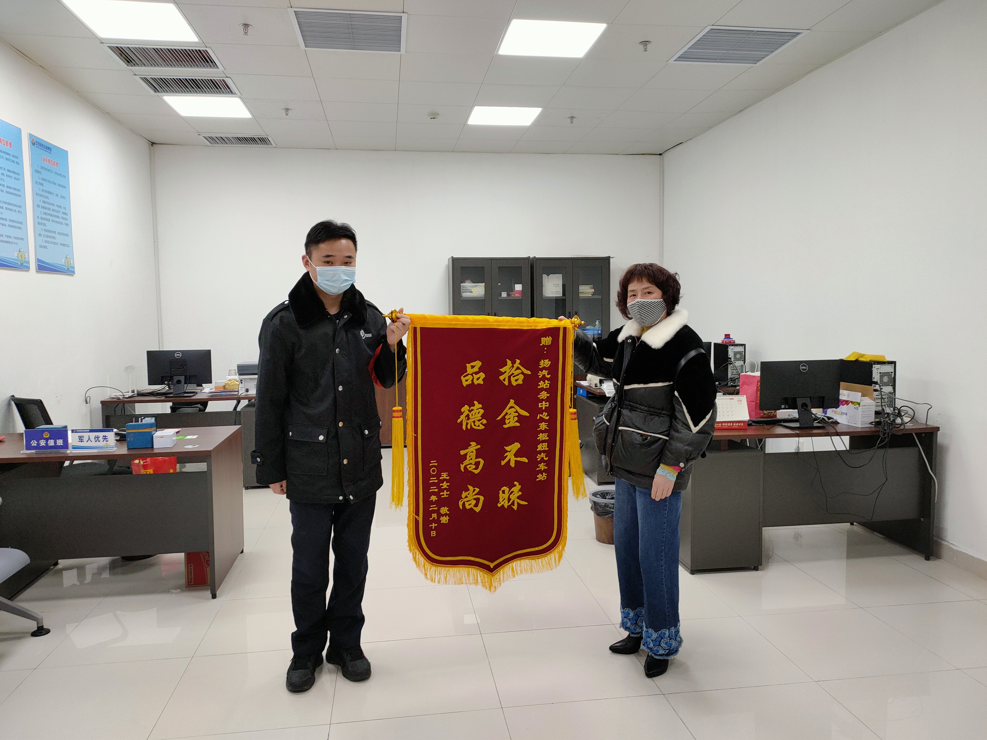 2月8日下午18:00,揚州東樞紐汽車站至泰州南站最后一班車即將發(fā)車,臨近發(fā)車點,一名旅客匆匆在售票處購票后帶著行李上二樓乘車,此時值班員姜衛(wèi)軍突然接到服務(wù)臺電話,售票員李玲說道,剛才有名旅客為了趕泰州班車,錢包落在了售票臺上。姜衛(wèi)軍隨即趕到現(xiàn)場,經(jīng)問詢,該班車已準點駛出車站,在與駐站民警溝通后,確認錢包內(nèi)裝有3000元現(xiàn)金、社保卡及銀行卡若干,為消除旅客的焦慮情緒,姜衛(wèi)軍也是第一時間與王女士取得聯(lián)系。