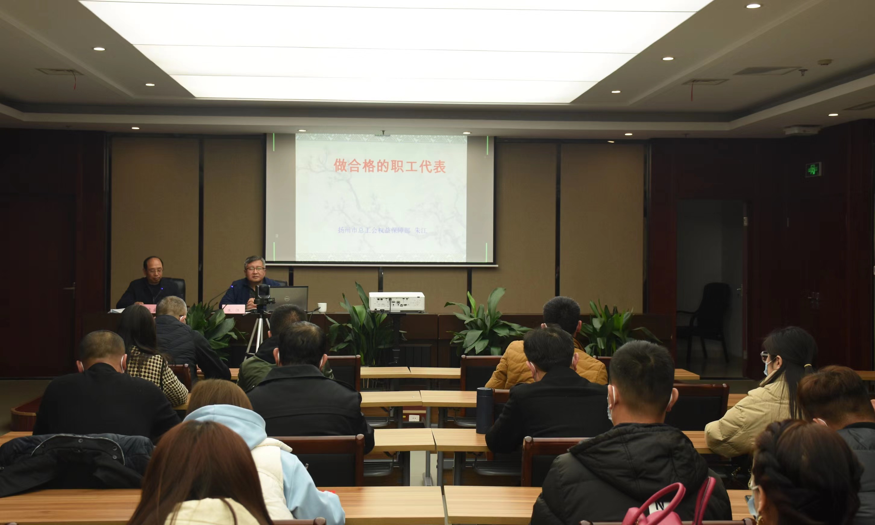 為提升新當(dāng)選“雙代會(huì)”代表的履職盡責(zé)能力,提高民主管理水平,3月3日下午,集團(tuán)公司在436會(huì)議室和揚(yáng)州汽車(chē)站會(huì)議室兩個(gè)會(huì)場(chǎng)舉辦職工代表培訓(xùn)班,對(duì)當(dāng)選集團(tuán)公司第十五屆職代會(huì)的93名正式代表進(jìn)行集中培訓(xùn)。邀請(qǐng)了市總工會(huì)權(quán)益保障部部長(zhǎng)朱江擔(dān)任講解,揚(yáng)汽集團(tuán)黨委副書(shū)記、紀(jì)委書(shū)記主持會(huì)議并講話(huà)。