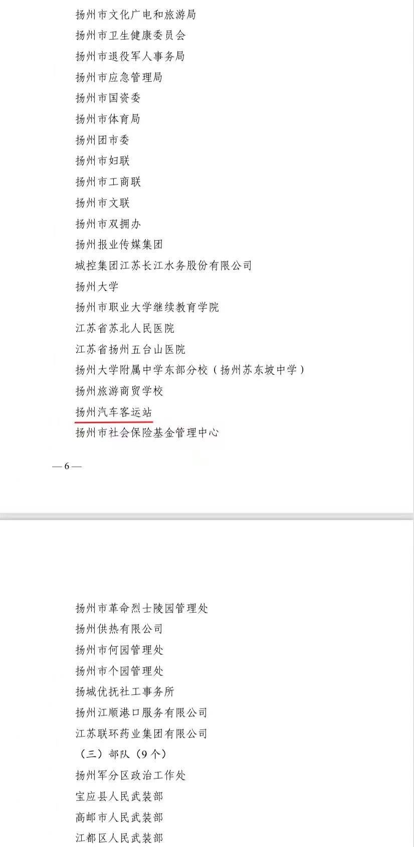 揚(yáng)州汽車客運(yùn)站榮獲市第八次爭創(chuàng)“全國雙擁模范城”模范單位