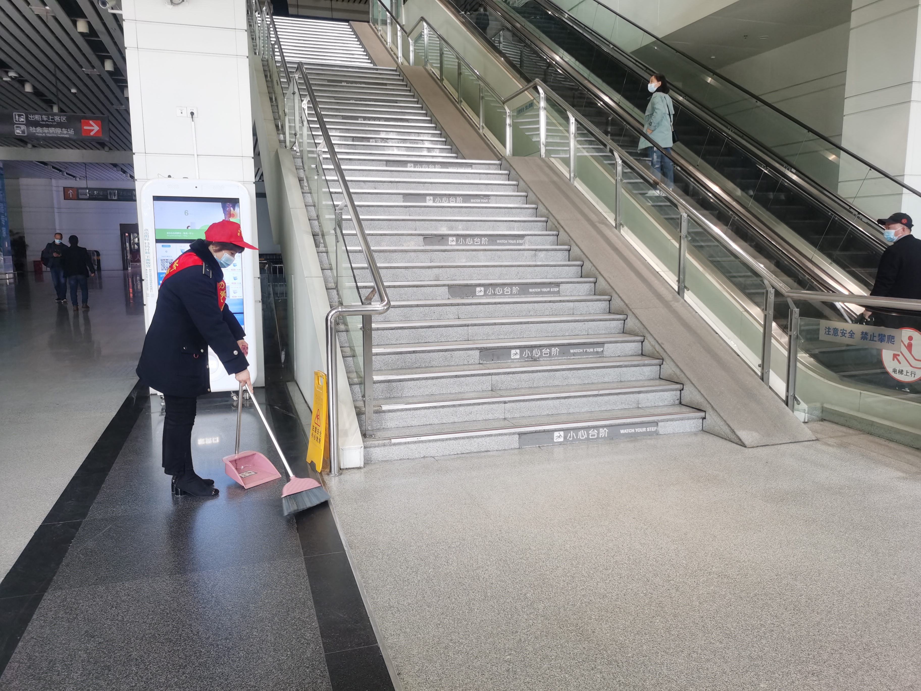 車站作為城市窗口單位之一,為保證乘車環(huán)境的衛(wèi)生,車站內(nèi)實行動態(tài)清掃制度,保持地面干凈整潔,利用櫥窗展板、易拉寶等多種形式廣泛傳播社會主義核心價值觀,把“講文明樹新風”“八禮四儀”“垃圾不落地 揚州更美麗”等主題融入車站空間,更好地維護站區(qū)秩序,有序引導旅客進出站。