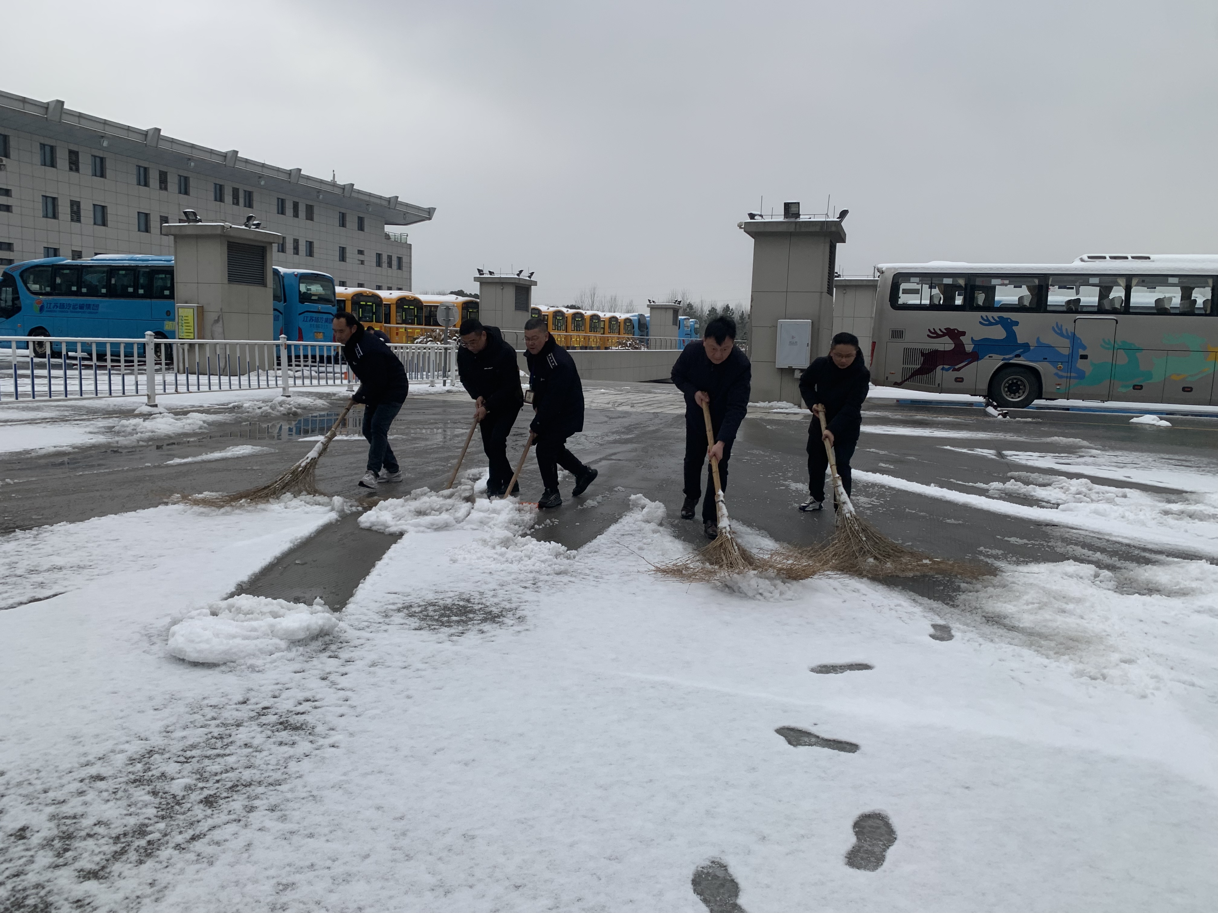在揚(yáng)汽集團(tuán)所屬的揚(yáng)州汽車站、汽車東站、江都汽車站以及揚(yáng)泰機(jī)場(chǎng)首末站,站務(wù)中心及時(shí)啟用了惡劣天氣應(yīng)急預(yù)案,在坡道等易滑倒區(qū)域,組織工作人員進(jìn)行積雪的清除工作,對(duì)站前廣場(chǎng)和車輛進(jìn)、出站坡道進(jìn)行分區(qū)灑鹽,立好防滑警示牌、鋪設(shè)防滑草墊,對(duì)站內(nèi)設(shè)施加強(qiáng)檢查和維護(hù),確保電梯、扶梯等設(shè)備的正常運(yùn)行,并增加引導(dǎo)人員,提醒旅客注意防滑和出行安全,同時(shí),叮囑駕駛員雪天減速慢行、雪天路滑、謹(jǐn)慎剎車、安全平穩(wěn)駕駛,全力保障廣大旅客安全、便捷出行。