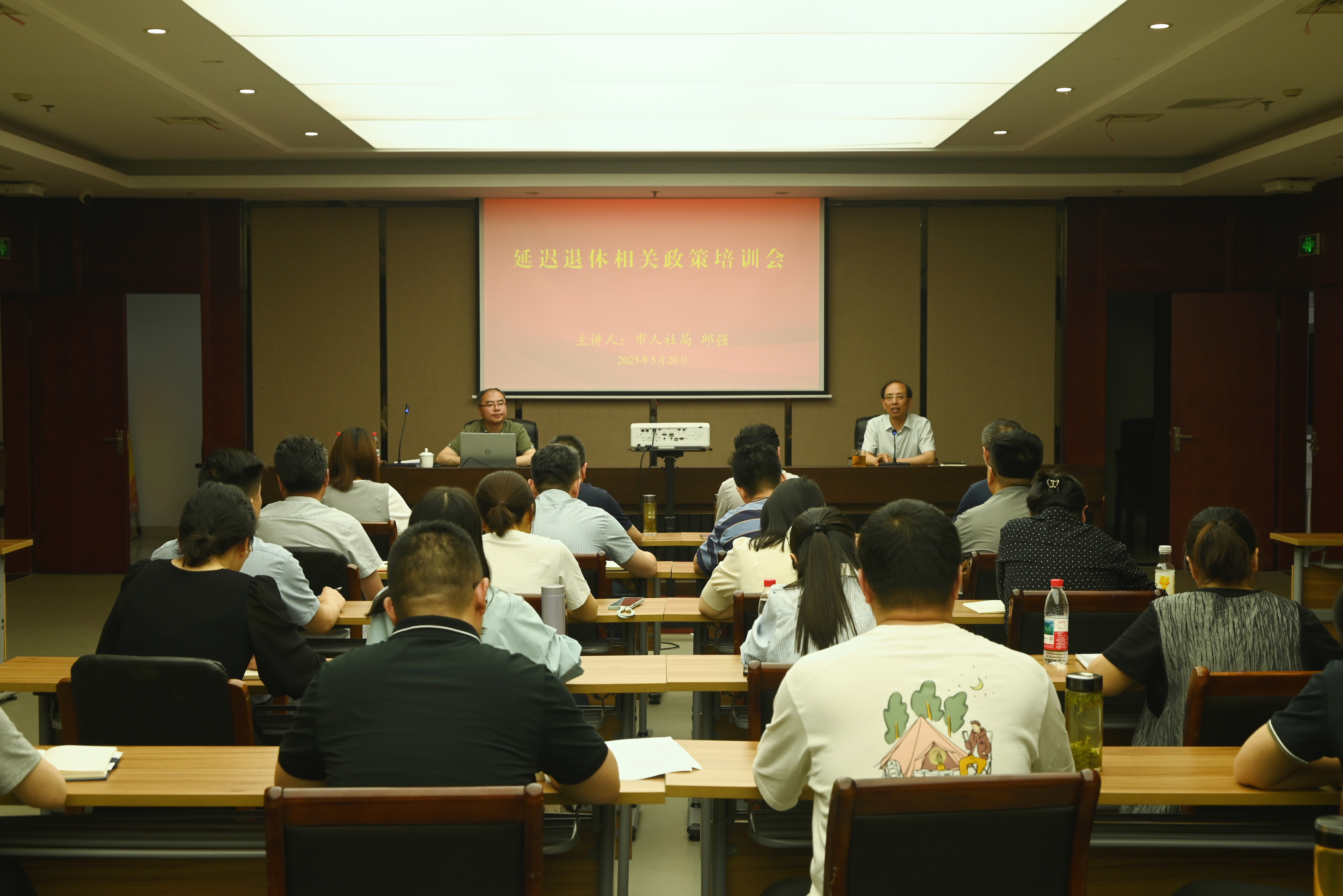 為進(jìn)一步貫徹落實(shí)漸進(jìn)式延遲法定退休年齡相關(guān)政策,確保全體員工能夠清晰理解政策內(nèi)容及實(shí)施細(xì)則,5月20日,揚(yáng)汽集團(tuán)組織開展“延遲退休政策”專題培訓(xùn)。活動(dòng)邀請(qǐng)市人社局養(yǎng)老處二級(jí)主任科員邱強(qiáng)授課,集團(tuán)黨委副書記、紀(jì)委書記、工會(huì)主席陳家宏主持。集團(tuán)各部室、單位相關(guān)人員、青年骨干、后備干部等40余人參加培訓(xùn)。